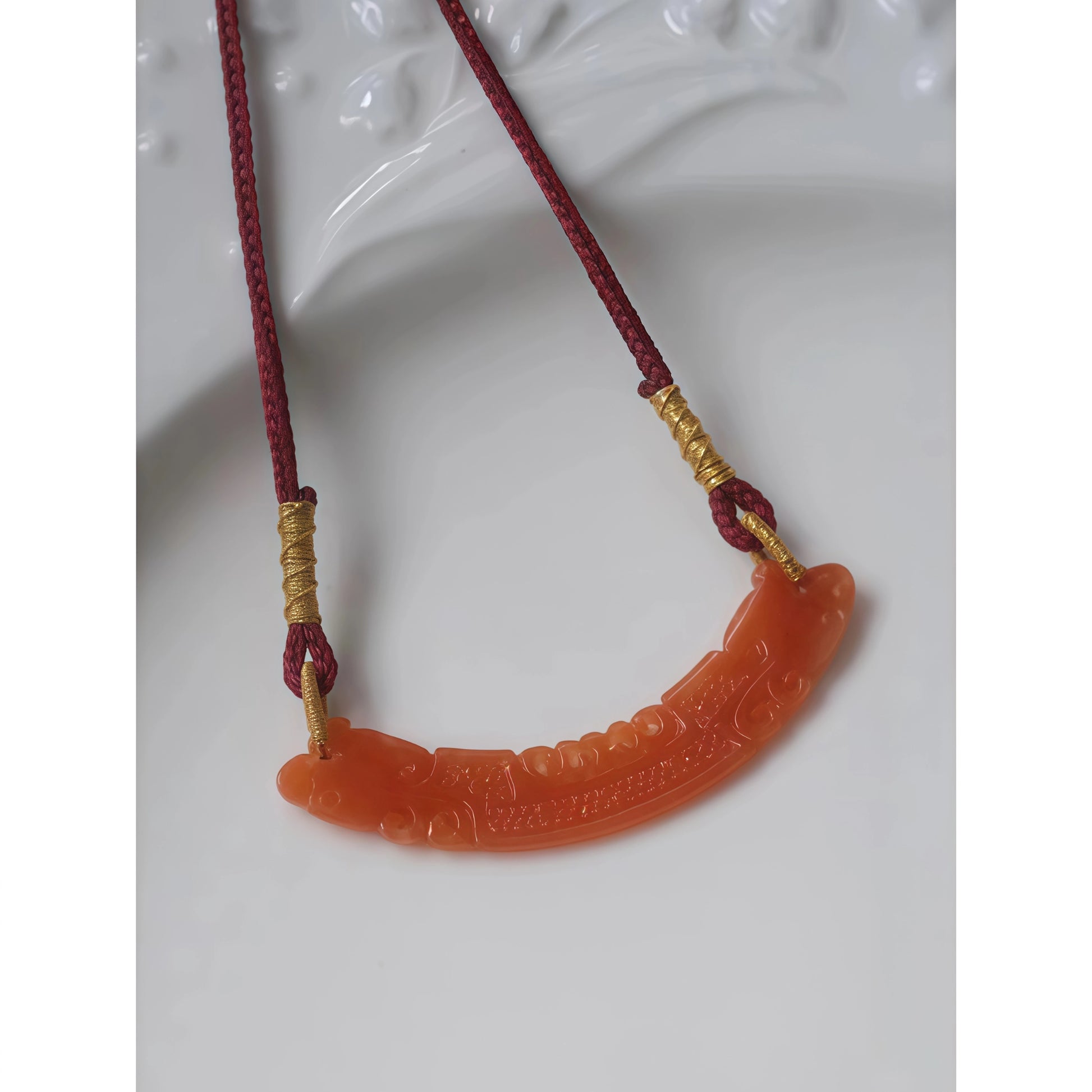 Discover the ancient energy of Nanhong Agate in this exquisite necklace and earrings set. Nanhong Agate is revered for its vibrant vitality energy, known to enhance courage, protect against negativity, and balance the root chakra. The semi-circular pendant features authentic 2000 BC mural carvings, while the square openwork earrings showcase intricate window designs. This 40cm set combines historical artistry with powerful crystal healing properties, creating a unique spiritual accessory that empowers modern women with both ancestral wisdom and contemporary elegance.