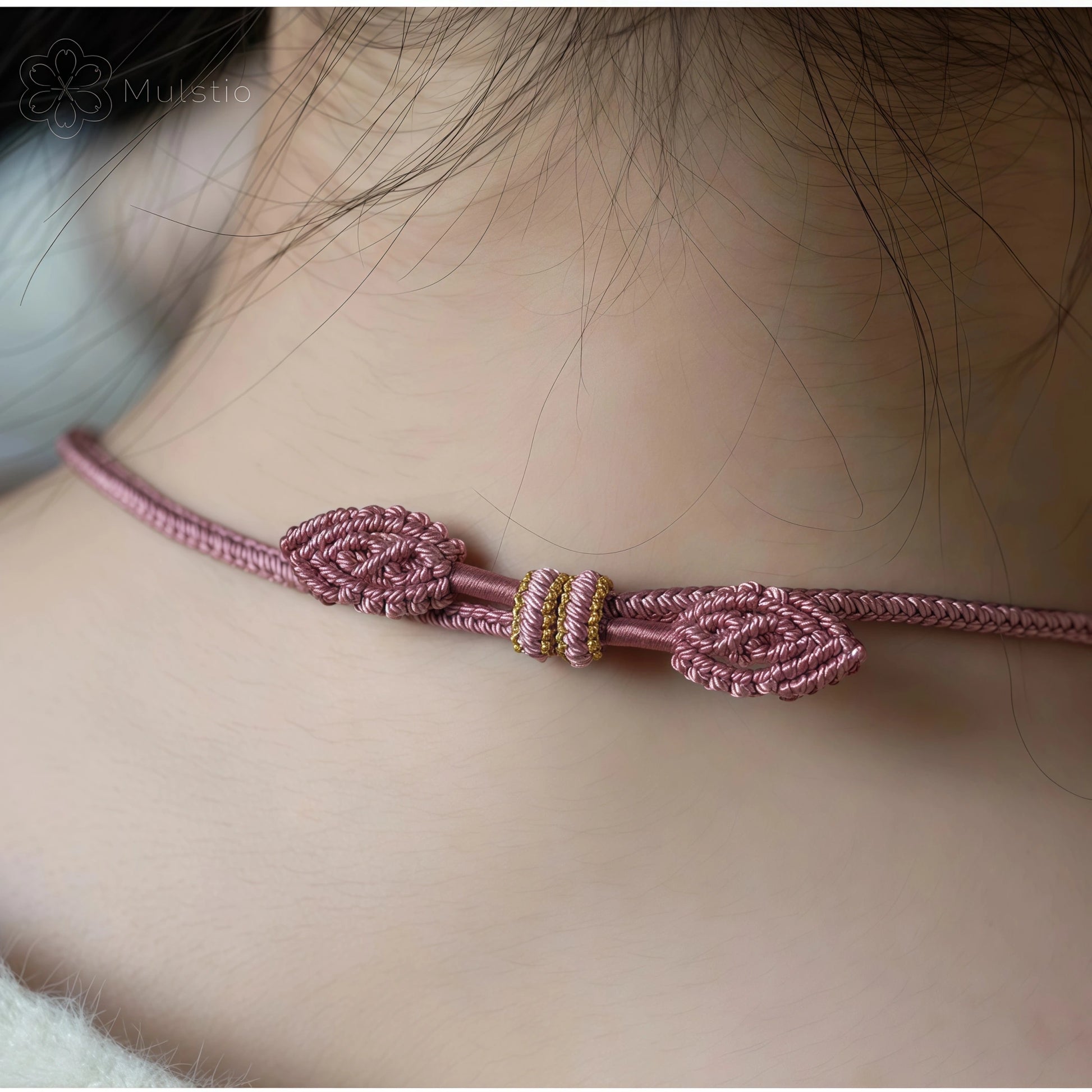 Pink Peach Blossom Handwoven String Necklace - Love Knot Adjustable Cord