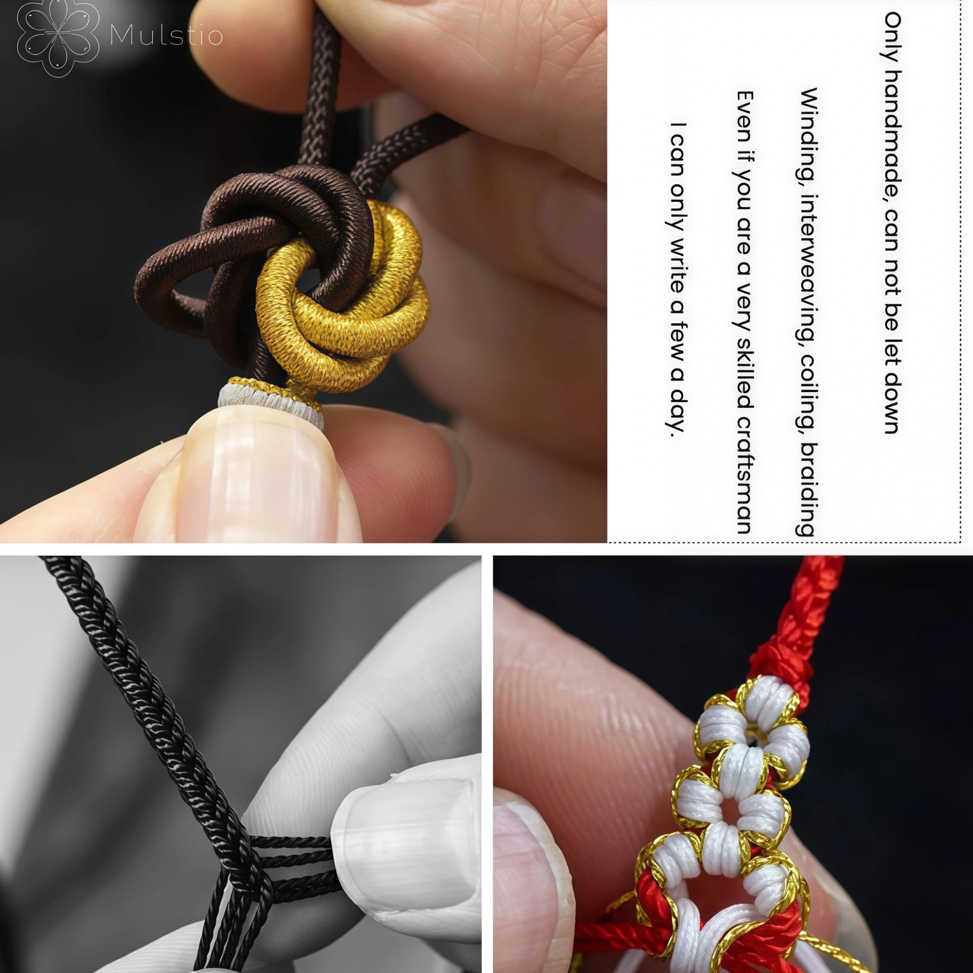 A: Its uniqueness comes from the exceptional craftsmanship; it takes an artisan an entire day to handweave the nine different knots into this complex and symbolic design.